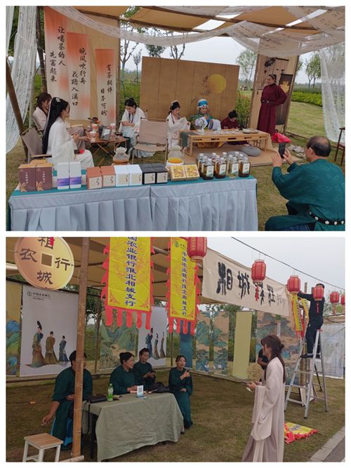 老物件營造新韻味。第一屆文化藝術(shù)節(jié)特別邀請參展的各種產(chǎn)品,經(jīng)過包裝,均以古代形象、“徽派”特色呈現(xiàn),其中包括茶莊,酒莊,琴行,錢莊,每個朝代的服裝、頭飾,各種食品鋪子等等。