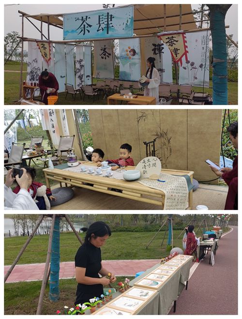 文化藝術(shù)節(jié)現(xiàn)場人潮涌動,很多家長帶著孩子體驗一起穿越時空,歡歌笑語在綠金湖上空蕩漾開來,F(xiàn)場有書畫展覽,有書法家和孩子們現(xiàn)場創(chuàng)作。潑一抹墨色,國風脈脈;調(diào)幾聲弦音,民韻悠悠。