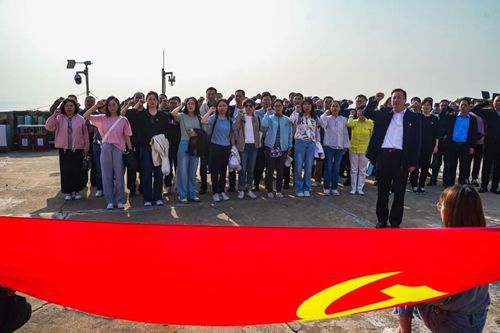 在燈塔下,全體黨員面對(duì)黨旗重溫入黨誓詞,并重走英雄巡島之路。