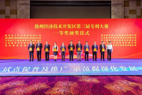 活動(dòng)現(xiàn)場(chǎng),趙旗為第三屆經(jīng)開區(qū)專利大賽一等獎(jiǎng)獲得者徐州徐工礦業(yè)機(jī)械有限公司等10家企業(yè)進(jìn)行頒獎(jiǎng),陳錦龍為承擔(dān)2023年經(jīng)開區(qū)高價(jià)值專利培育計(jì)劃項(xiàng)目的徐工集團(tuán)工程機(jī)械股份有限公司道路機(jī)械分公司等5家企業(yè)進(jìn)行授牌;發(fā)布了生物醫(yī)藥產(chǎn)業(yè)專利導(dǎo)航;徐州經(jīng)濟(jì)技術(shù)開發(fā)區(qū)、無錫國(guó)家高新技術(shù)產(chǎn)業(yè)開發(fā)區(qū)、蘇州工業(yè)園區(qū)、蘇州國(guó)家高新技術(shù)產(chǎn)業(yè)開發(fā)區(qū)、南京江寧經(jīng)濟(jì)技術(shù)開發(fā)區(qū)分別作國(guó)家級(jí)知識(shí)產(chǎn)權(quán)強(qiáng)國(guó)建設(shè)示范園區(qū)經(jīng)驗(yàn)分享;舉辦了知識(shí)產(chǎn)權(quán)專題講座。11月3日上午,與會(huì)人員到徐州重型機(jī)械有限公司和江蘇工程機(jī)械產(chǎn)業(yè)知識(shí)產(chǎn)權(quán)運(yùn)營(yíng)中心進(jìn)行了現(xiàn)場(chǎng)觀摩。