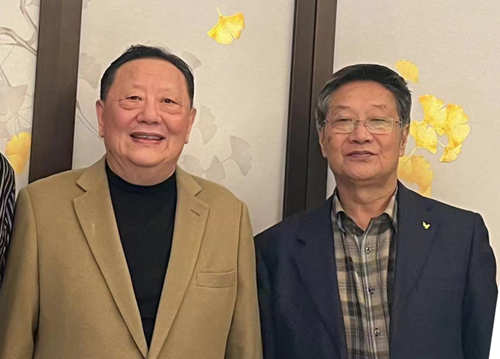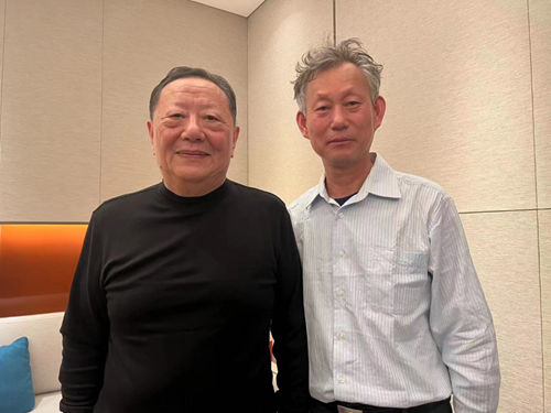 中國(guó)煤礦作協(xié)副主席、本屆烏金獎(jiǎng)獲得者、中國(guó)礦大人文和藝術(shù)學(xué)院教授史修永(右)與沙凡合影