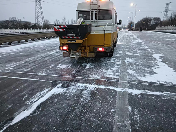 截至上午10點,累計出動應急搶險人員842人,公路巡查車輛、機械設備136臺(套),共撒布融雪劑233.2噸、防滑料871噸。