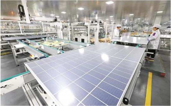 “新三樣”產(chǎn)品走俏海外,不僅釋放外貿(mào)增長(zhǎng)新動(dòng)能,也為相關(guān)企業(yè)開拓了更廣闊的國(guó)際市場(chǎng)。圖為在棗莊一家新能源公司智能化車間,工人正在生產(chǎn)光伏電池組件。(吉喆)