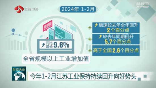江蘇主動聚焦新質(zhì)生產(chǎn)力,壯大新興產(chǎn)業(yè),培育新增長點,推動更多的企業(yè)開展“智改數(shù)轉(zhuǎn)網(wǎng)聯(lián)”,提升“江蘇制造”競爭優(yōu)勢,今年1-2月全省工業(yè)運行總體延續(xù)去年四季度以來走勢,保持持續(xù)回升向好勢頭、實現(xiàn)穩(wěn)步開局。