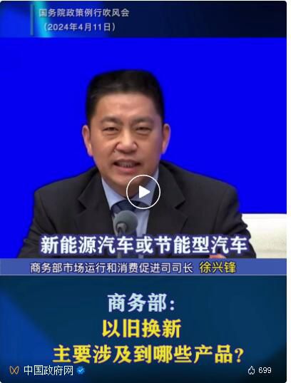 國(guó)務(wù)院新聞辦公室于4月11日舉行國(guó)務(wù)院政策例行吹風(fēng)會(huì),國(guó)家發(fā)展改革委、工業(yè)和信息化部、財(cái)政部、住房城鄉(xiāng)建設(shè)部、商務(wù)部、市場(chǎng)監(jiān)管總局有關(guān)負(fù)責(zé)人介紹《推動(dòng)大規(guī)模設(shè)備更新和消費(fèi)品以舊換新行動(dòng)方案》有關(guān)情況,并答記者問(wèn)。一起來(lái)看。