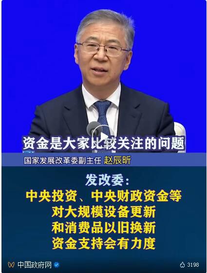 資金是大家比較關(guān)注的問(wèn)題,中央投資、中央財(cái)政資金等對(duì)大規(guī)模設(shè)備更新和消費(fèi)品以舊換新肯定是有資金支持的,而且支持會(huì)是有力度的。同時(shí),當(dāng)前各地政府也都在認(rèn)真研究,會(huì)結(jié)合各自財(cái)力的實(shí)際情況,拿出一定的資金給予支持。