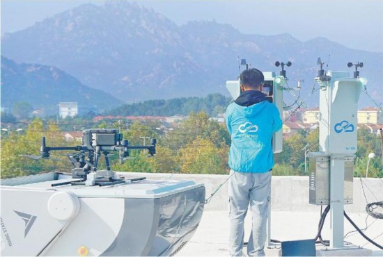 青島嶗山區(qū),技術(shù)保障人員正在“全域低空智能感知平臺(tái)”無(wú)人機(jī)自動(dòng)化機(jī)場(chǎng)檢修設(shè)備。
