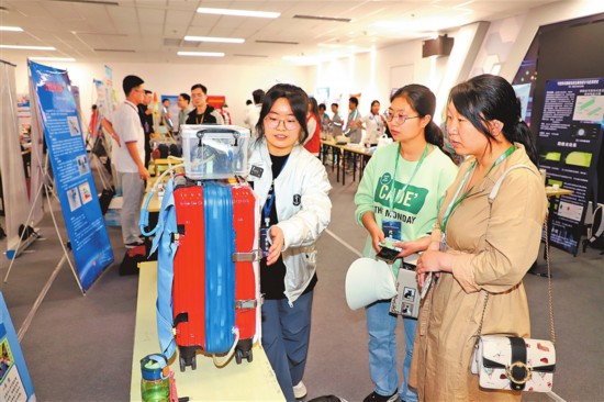 新鄉(xiāng)市第一中學(xué)學(xué)生劉易杭以“環(huán)境友好型寵物攜帶箱”項(xiàng)目參加大賽終評。本報(bào)記者 師喆 攝