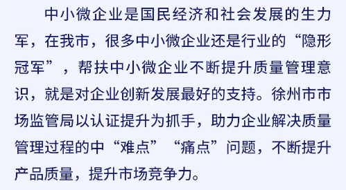 助力中小微企業(yè)質(zhì)量發(fā)展 徐州市質(zhì)量認(rèn)證提升行動(dòng)連續(xù)兩年全省領(lǐng)先