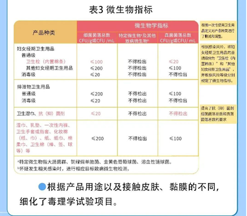 四是強化了產(chǎn)品衛(wèi)生要求,根據(jù)一次性使用衛(wèi)生用品不同產(chǎn)品的健康風險,按風險等級增加了pH值、可遷移性熒光增白劑殘留量理化指標,同時調(diào)整了微生物污染指標和毒理學安全性要求。