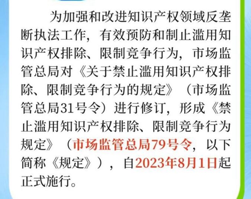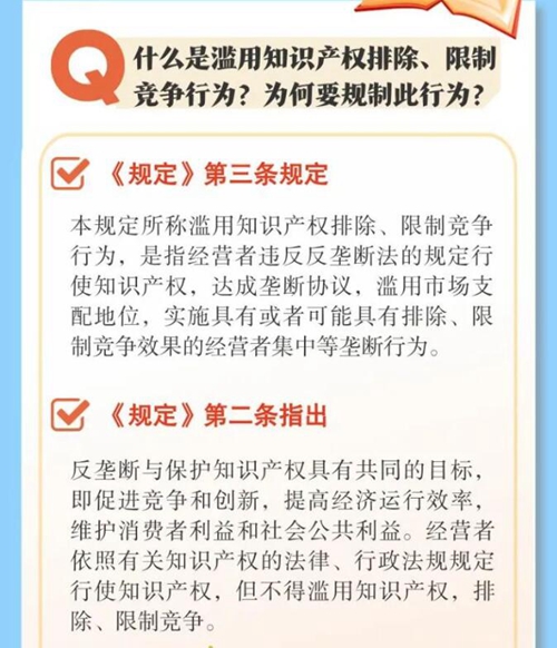 8月1日,《禁止濫用知識產(chǎn)權(quán)排除、限制競爭行為規(guī)定》施行一周年。為普及反壟斷法律知識,弘揚公平競爭理念,特制作“一圖讀懂”,幫助經(jīng)營主體有效預(yù)防和制止濫用知識產(chǎn)權(quán)排除、限制競爭行為。