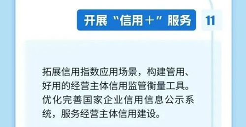 十一是開展“信用+”服務(wù),拓展市場監(jiān)管信用工具、信用信息的應(yīng)用場景,加強(qiáng)部門、機(jī)構(gòu)間信用信息共享合作。