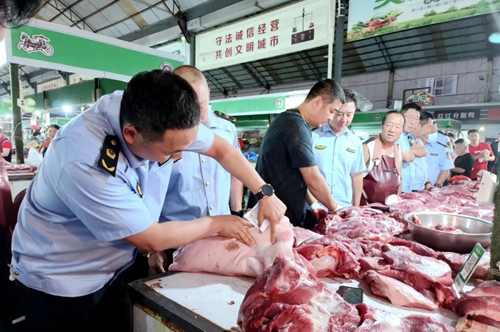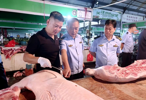 檢查共出動執(zhí)法人員20余人,對漢城商都農(nóng)貿(mào)市場內(nèi)的38家豬肉攤點進行了逐一檢查,未發(fā)現(xiàn)違法違規(guī)行為。