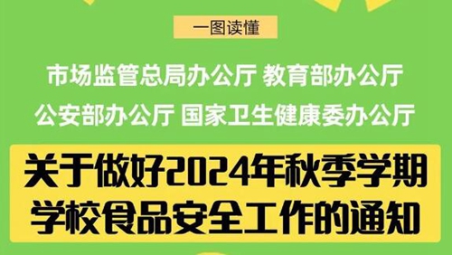 市場(chǎng)監(jiān)管總局、教育部、公安部、國家衛(wèi)生健康委近日聯(lián)合印發(fā)《關(guān)于做好2024年秋季學(xué)期學(xué)校食品安全工作的通知》(以下簡稱《通知》),部署各地做好2024年秋季學(xué)期學(xué)校和幼兒園食品安全工作,切實(shí)保障在校師生飲食安全。