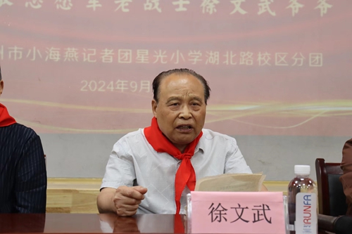 黃淮網(wǎng)(梁蘇國(guó) 丁修武)  為慶祝新中國(guó)成立75周年,紀(jì)念中國(guó)人民志愿軍抗美援朝出國(guó)作戰(zhàn)74周年,9月25日,徐州市小海燕記者團(tuán)總部邀請(qǐng)志愿軍老戰(zhàn)士徐文武走進(jìn)星光小學(xué)湖北路校區(qū)分團(tuán),與小記者面對(duì)面,講述感天動(dòng)地的抗美援朝故事,并接受了小記者的采訪。