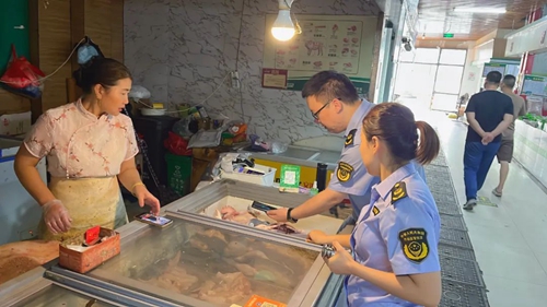 民生領域圍繞糧油肉蛋、月餅、煙酒等與節(jié)日消費密切相關的商品,對轄區(qū)內的西賀、碧螺等農貿市場開展節(jié)前檢查,重點對流通環(huán)節(jié)的肉品“兩章兩證”情況、當天市場快檢情況、水產區(qū)計量器具、市場經營秩序、消防安全、明碼標價等開展檢查,并督促市場管理方做好節(jié)日期間的市場安全和保供工作。同時,執(zhí)法人員向各經營戶和消費者宣傳計量法律法規(guī),嚴厲打擊哄抬物價、價格欺詐等違法行為,引導經營主體加強價格自律,提高經營者的誠信經營意識和消費者的維權防范意識,切實履行社會責任。