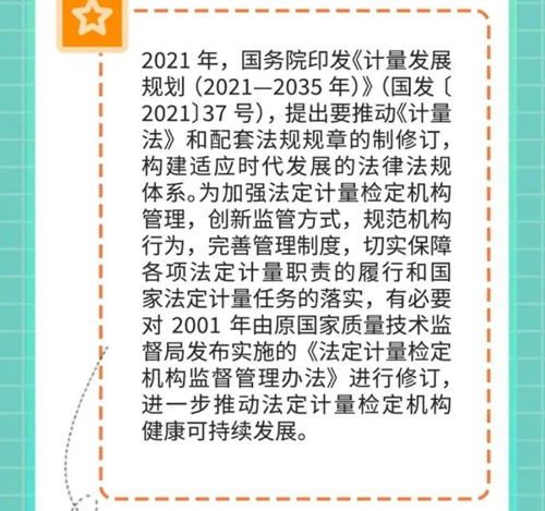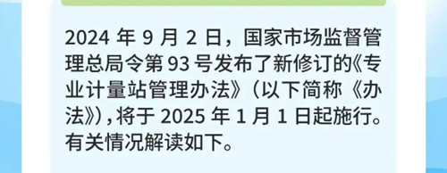 計(jì)量技術(shù)機(jī)構(gòu)是切實(shí)保障各項(xiàng)法定計(jì)量職責(zé)履行和國(guó)家法定計(jì)量任務(wù)落實(shí)的重要力量。為加強(qiáng)法定計(jì)量檢定機(jī)構(gòu)管理,發(fā)揮專(zhuān)業(yè)計(jì)量站技術(shù)支撐作用,推動(dòng)計(jì)量技術(shù)機(jī)構(gòu)健康可持續(xù)發(fā)展,市場(chǎng)監(jiān)管總局近日修訂出臺(tái)《法定計(jì)量檢定機(jī)構(gòu)監(jiān)督管理辦法》《專(zhuān)業(yè)計(jì)量站管理辦法》(以下簡(jiǎn)稱(chēng)《辦法》),將于2025年1月1日起施行。