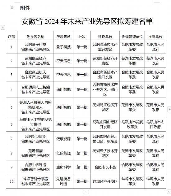 安徽10家省級(jí)未來(lái)產(chǎn)業(yè)先導(dǎo)區(qū)擬籌建名單公示