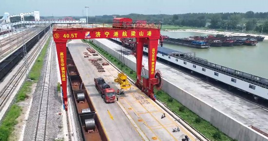 圖/獲得全國(guó)內(nèi)河港口首張“雙碳”認(rèn)證書的梁山港