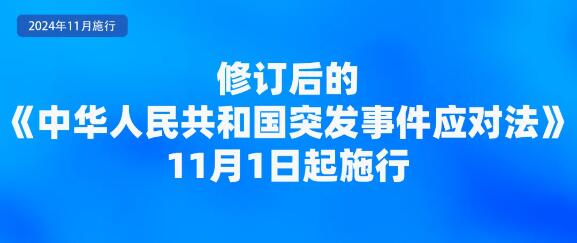 新修訂的《中華人民共和國突發(fā)事件應(yīng)對法》6月28日通過,自2024年11月1日起施行!锻话l(fā)事件應(yīng)對法》共八章,包括總則、管理與指揮體制、預(yù)防與應(yīng)急準備、監(jiān)測與預(yù)警、應(yīng)急處置與救援、事后恢復(fù)與重建、法律責任、附則。《突發(fā)事件應(yīng)對法》完善了突發(fā)事件應(yīng)對管理與指揮體制,明確各方責任,設(shè)專章對管理與指揮體制作出規(guī)定,其中明確跨行政區(qū)域突發(fā)事件應(yīng)對及協(xié)同應(yīng)對機制;規(guī)定突發(fā)事件應(yīng)急指揮機構(gòu)的設(shè)立、組成,明確突發(fā)事件應(yīng)急指揮機構(gòu)在突發(fā)事件應(yīng)對過程中發(fā)布的決定、命令、措施,與設(shè)立它的人民政府發(fā)布的決定、命令、措施具有同等效力,法律責任由設(shè)立它的人民政府承擔。