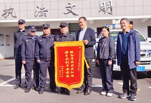 黃淮網(wǎng)(楊 勇)  近日,歌風(fēng)小學(xué)校長一行人來到沛縣城管局老城區(qū)執(zhí)法中隊,代表學(xué)校送來一面印有“服務(wù)學(xué)校共筑和諧 攜手共創(chuàng)平安校園”的錦旗,感謝老城區(qū)執(zhí)法中隊長期在護學(xué)崗的辛勤付出。