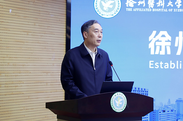 徐州醫(yī)科大學(xué)黨委常委、副校長、徐醫(yī)附院黨委書記呂凌作醫(yī)院建設(shè)發(fā)展報告。徐醫(yī)附院院長金培生主持會議。