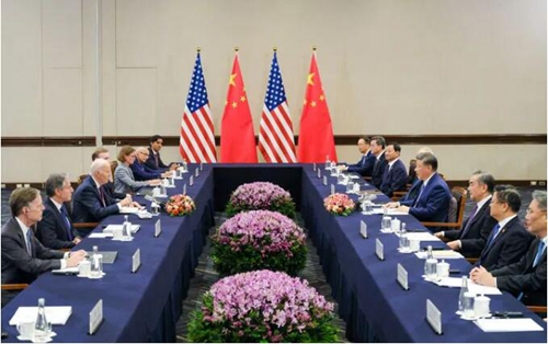 當(dāng)?shù)貢r(shí)間11月16日下午,國(guó)家主席習(xí)近平在利馬同美國(guó)總統(tǒng)拜登舉行會(huì)晤。新華社記者 丁林 攝