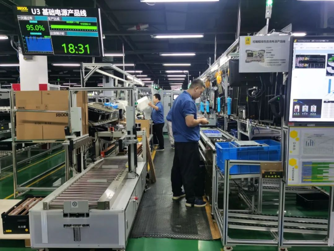 在普源精電的智能化U型生產(chǎn)線上,機(jī)器人正高效地裝配著高端產(chǎn)品。這類精益生產(chǎn)線由普源精電自主設(shè)計(jì),不僅大幅簡(jiǎn)化了產(chǎn)品裝配流程,還顯著提升了生產(chǎn)效率和產(chǎn)品質(zhì)量。