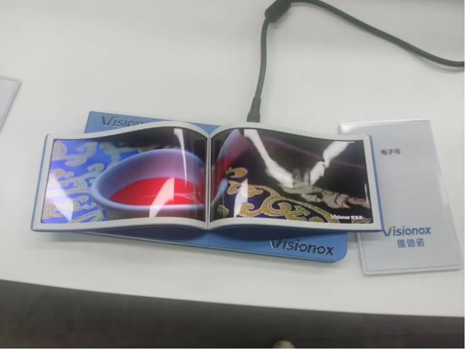 這是維信諾柔性屏產(chǎn)品,F(xiàn)場(chǎng)工作人員介紹,維信諾屢次突破柔性顯示折疊技術(shù)邊界,最小彎折半徑可達(dá)到1.6mm。