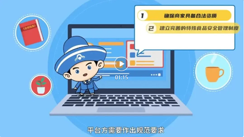 藍(lán)藍(lán):等一下,金金,保健食品等特殊食品網(wǎng)絡(luò)銷售也有特殊要求了。為了保障消費者網(wǎng)上購買特殊食品的安全,規(guī)范網(wǎng)絡(luò)銷售特殊食品行為,國家市場監(jiān)督管理總局今年推出了《網(wǎng)絡(luò)銷售特殊食品安全合規(guī)指南》,從資質(zhì)公示、宣傳用語、網(wǎng)頁展示等多個方面給予了明確指引。