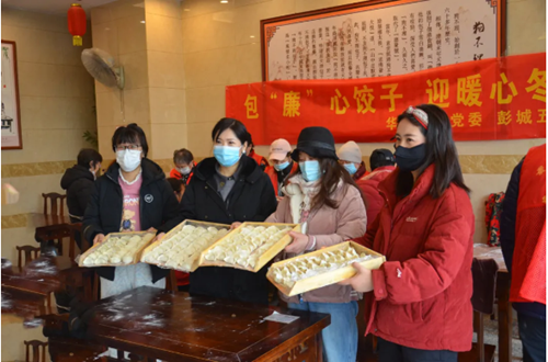 黃淮網(wǎng)   12月19日上午,在即將到來的“冬至大如年” ,這個充滿中國傳統(tǒng)意義的“冬至”重要節(jié)氣里,徐州市彭城五交化有限責(zé)任公司(以下簡稱“彭城五交化”)公司狗不理包子鋪(中山北路店)與鼓樓區(qū)華康社區(qū)攜手合作,在店內(nèi)舉辦了“包‘廉’心餃子,迎暖心冬至”活動。