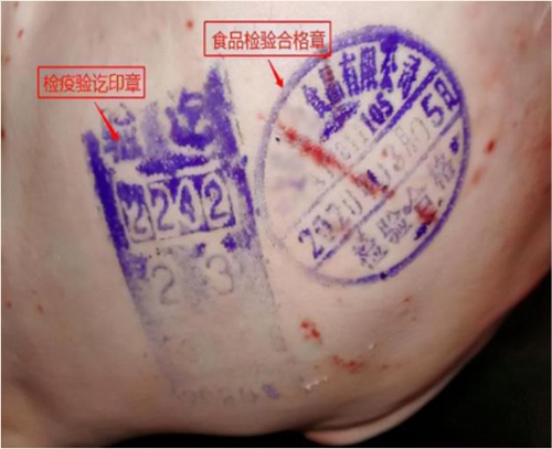 購買豬肉,請(qǐng)查看是否有檢疫驗(yàn)訖印章和肉品品質(zhì)檢驗(yàn)合格驗(yàn)訖印章,如下圖: