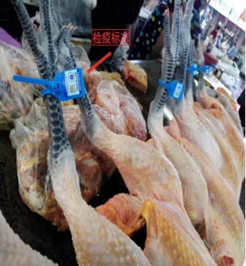 購買雞、鴨等禽類產(chǎn)品,請(qǐng)查看檢疫標(biāo)志(腳環(huán)),可掃描腳環(huán)上二維碼,查看相關(guān)信息,如下圖: