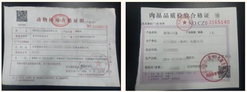 購買豬、牛、羊等肉類時(shí),請(qǐng)查看是否有《動(dòng)物檢疫合格證明》《肉品品質(zhì)檢驗(yàn)合格證》,如下圖: