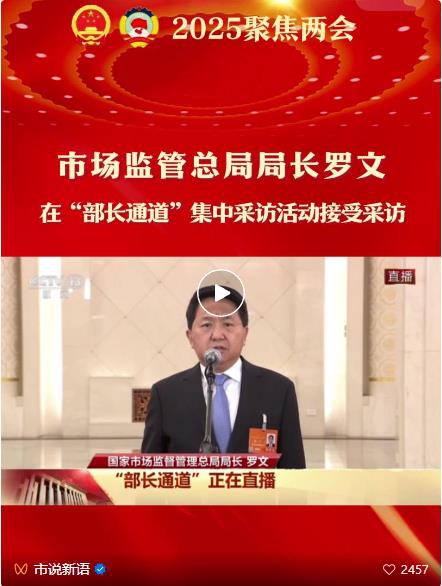 3月5日,第十四屆全國人民代表大會(huì)第三次會(huì)議結(jié)束后,國家市場監(jiān)督管理總局局長羅文在首場“部長通道”集中采訪活動(dòng)中,就促進(jìn)平臺(tái)經(jīng)濟(jì)健康發(fā)展、規(guī)范涉企執(zhí)法等方面熱點(diǎn)問題回答媒體記者提問。