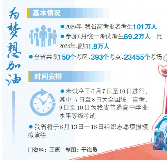 6月5日,省教育廳舉行2025年普通高考第一次新聞發(fā)布會,通報高考準(zhǔn)備情況,并對考生作出相關(guān)提醒。