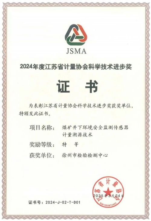 項(xiàng)目:煤礦井下環(huán)境安全監(jiān)測(cè)傳感器計(jì)量溯源技術(shù)獎(jiǎng)項(xiàng):2024年度江蘇省計(jì)量協(xié)會(huì)科學(xué)技術(shù)進(jìn)步獎(jiǎng)特等獎(jiǎng)(全省共14個(gè)項(xiàng)目獲獎(jiǎng),特等獎(jiǎng)僅2項(xiàng))