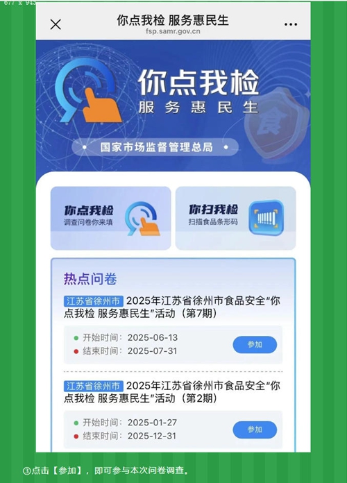 ②定位在江蘇徐州市的市民朋友選擇【2025年江蘇省徐州市食品安全“你點我檢 服務惠民生”活動(第7期)】 (如下圖);