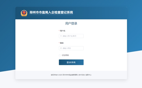 入企檢查前,執(zhí)法人員登錄“邳州市市監(jiān)局入企檢查登記系統(tǒng)”小程序完成登記審批。