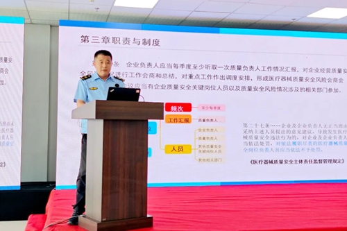 下一步,市市場監(jiān)管局將以此次培訓為起點,結合“全國藥品安全宣傳周”系列活動,持續(xù)推動醫(yī)療器械經(jīng)營企業(yè)強化質(zhì)量管理意識、完善體系建設,不斷提升行業(yè)整體合規(guī)水平;同時還將通過科普手冊、線上解讀、現(xiàn)場咨詢等多樣化形式,加大“兩品一械”安全知識普及力度,進一步提升公眾科學認知能力,推動形成“監(jiān)管有力、企業(yè)負責、公眾參與”的共治共享格局,切實守護群眾用械安全。
