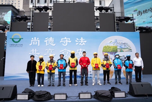 活動(dòng)中,鼓樓區(qū)副區(qū)長(zhǎng)劉雪君與市市場(chǎng)監(jiān)管局三級(jí)調(diào)研員高峰共同為“外賣(mài)小哥”頒發(fā)食品安全監(jiān)督聘書(shū)。餐飲企業(yè)代表和大學(xué)生代表分別宣讀了尚儉崇信倡議與校園食品安全志愿者倡議。最后,副市長(zhǎng)郭曉敏宣布全市2025年食品安全宣傳周活動(dòng)正式啟動(dòng)。