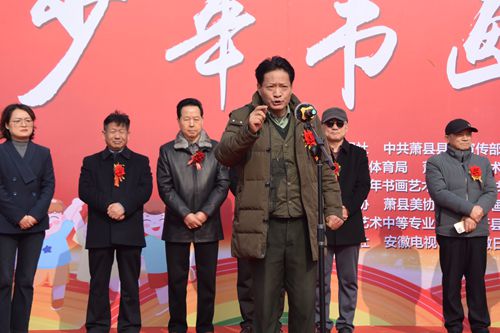 中共蕭縣縣委教育工委書記 蕭縣教育體育局局長(zhǎng)劉先鋒在致辭中表示,十年來(lái),蕭縣青少年書畫藝術(shù)研究會(huì)深耕美育沃土,讓書畫之花綻放在校園內(nèi)外,近千名青少年在全國(guó)賽事中嶄露頭角,為“全國(guó)書畫教育進(jìn)課堂試點(diǎn)縣”的美譽(yù)增光添彩。今天,340 幅佳作齊聚龍河之畔,軟筆的蒼勁、硬筆的娟秀、國(guó)畫的雅致、兒童畫的純真,無(wú)不彰顯著中華文脈的薪火相傳。