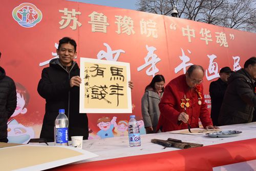 開幕式暖場(chǎng)環(huán)節(jié),四省藝術(shù)家和學(xué)生代表走上臺(tái),揮筆潑墨,進(jìn)行了迎新春書畫筆繪藝術(shù)展示。