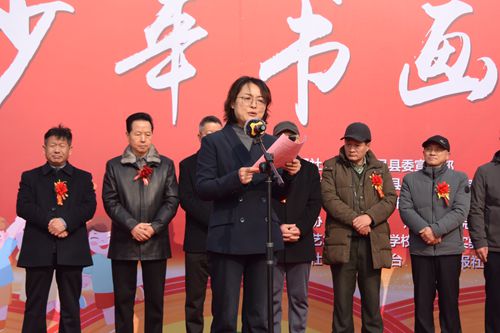 參加開幕式的領(lǐng)導(dǎo)和嘉賓有:中共蕭縣縣委常委、宣傳部部長(zhǎng)馬陽(yáng)陽(yáng),中國(guó)書法家協(xié)會(huì)理事、中國(guó)楹聯(lián)協(xié)會(huì)副會(huì)長(zhǎng)、軍旅書法家倪進(jìn)祥;書法報(bào)社副社長(zhǎng)、副總編嚴(yán)海南,淮北市師范大學(xué)藝術(shù)學(xué)院院長(zhǎng)唐成輝、江蘇師范大學(xué)教授馬亞,中國(guó)書法家協(xié)會(huì)會(huì)員、徐州市青少年藝術(shù)協(xié)會(huì)主席沈鵬、棗莊市書法家協(xié)會(huì)副秘書長(zhǎng)、棗莊市青年書法家協(xié)會(huì)副主席兼秘書長(zhǎng)李川東,中國(guó)書法家協(xié)會(huì)會(huì)員、永城市書法家協(xié)會(huì)副主席(兼秘書長(zhǎng))鄭固華、書法報(bào)社淮北工作站站長(zhǎng)、濉溪縣書法家協(xié)會(huì)副主席(兼秘書長(zhǎng))王梓濤,宿州市教體局關(guān)工委副主任楊權(quán),拂曉報(bào)副主任周紅穎,中國(guó)黃淮網(wǎng)總編輯王艷,安徽金海書畫市場(chǎng)總經(jīng)理邱大偉,蕭縣縣委常委、宣傳部部長(zhǎng)馬陽(yáng)陽(yáng),蕭縣政協(xié)副主席張艷,蕭縣關(guān)工委主任鄭忠亮,蕭縣縣委宣傳部常務(wù)副部長(zhǎng)劉濤,蕭縣縣委宣傳部副部長(zhǎng)徐佩,蕭縣縣委宣傳部副部長(zhǎng)、縣融媒體中心黨組書記孫華,蕭縣教育體育局局長(zhǎng)劉先鋒,蕭縣文化和旅游局局長(zhǎng)吳孝敏,蕭縣文聯(lián)主席夏凌,蕭縣教育體育局關(guān)工委主任、蕭縣青少年書畫藝術(shù)研究會(huì)會(huì)長(zhǎng)杜長(zhǎng)勇。