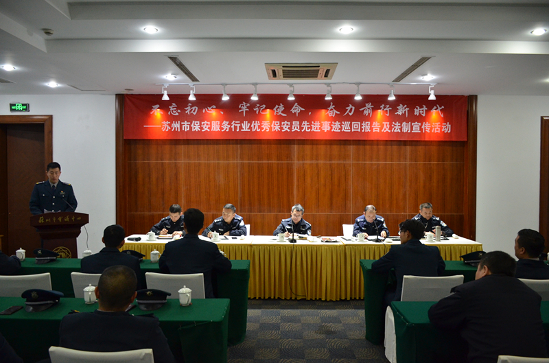 11月20日,“不忘初心、牢記使命,奮力前行新時代”蘇州市保安服務(wù)行業(yè)優(yōu)秀保安員先進(jìn)事跡巡回報告及法制宣傳活動在蘇州市會議中心舉行,保安公司陸軍吉同志參加了此次演講,蘇州治安大隊領(lǐng)導(dǎo)出席了本次活動。