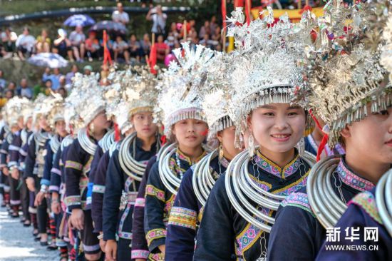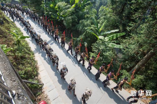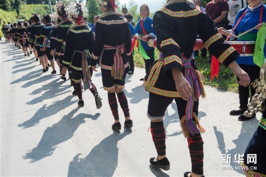 7月18日,錦屏縣彥洞鄉(xiāng)瑤白村村民在盛裝游演。