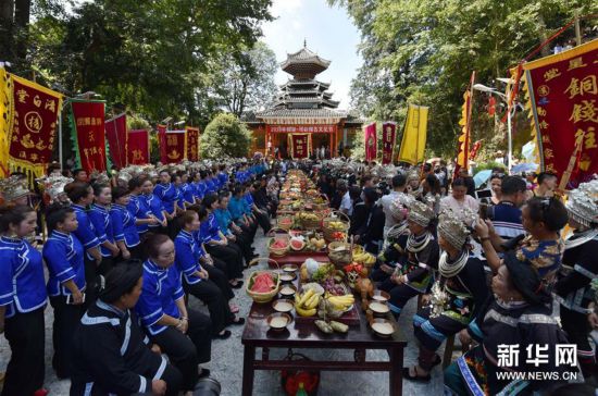 農(nóng)歷六月初六,貴州省錦屏縣彥洞鄉(xiāng)瑤白村村民身著盛裝,匯聚于寨中的戲樓前,擺起長(zhǎng)桌盛宴,舉辦擺古活動(dòng),歡慶“六月六”。擺古是一種反映該地區(qū)侗族遷徙歷史的口頭文學(xué),是融歌、舞、戲、演說(shuō)等表演藝術(shù)于一體的民俗盛會(huì)。