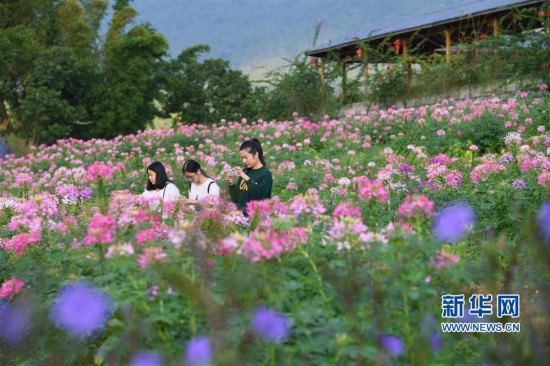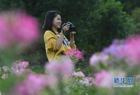 10月22日,游客在“孔元花之谷”賞花拍照。新華社記者林善傳攝
