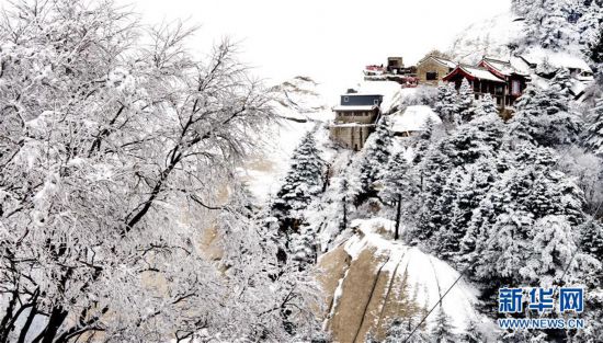 11月18日,華山南峰被滿山的雪凇裝扮得分外嬌艷。 新華社記者 陶明 攝