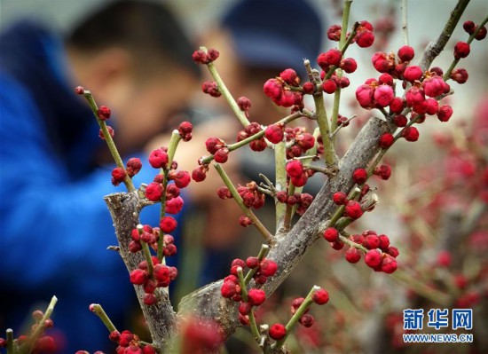 這是在河南省鄢陵縣一處梅園內(nèi)拍攝的梅花(1月19日攝)。新華社記者李安攝